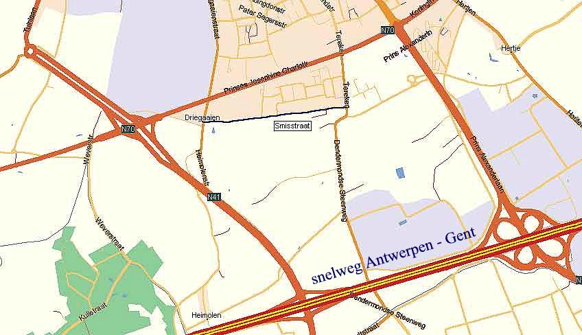 Door op het kleine kaartje te klikken krijgt u een vergroting van de plattegrond van Sint Niklaas zuid. Terug naar deze pagina kunt u met de "back / terug" knop van uw browser.